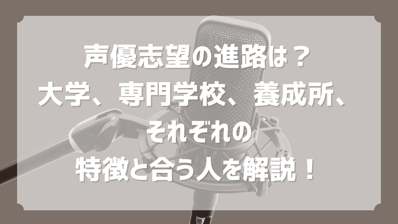 今回は、声優志望の進路について解説しました。